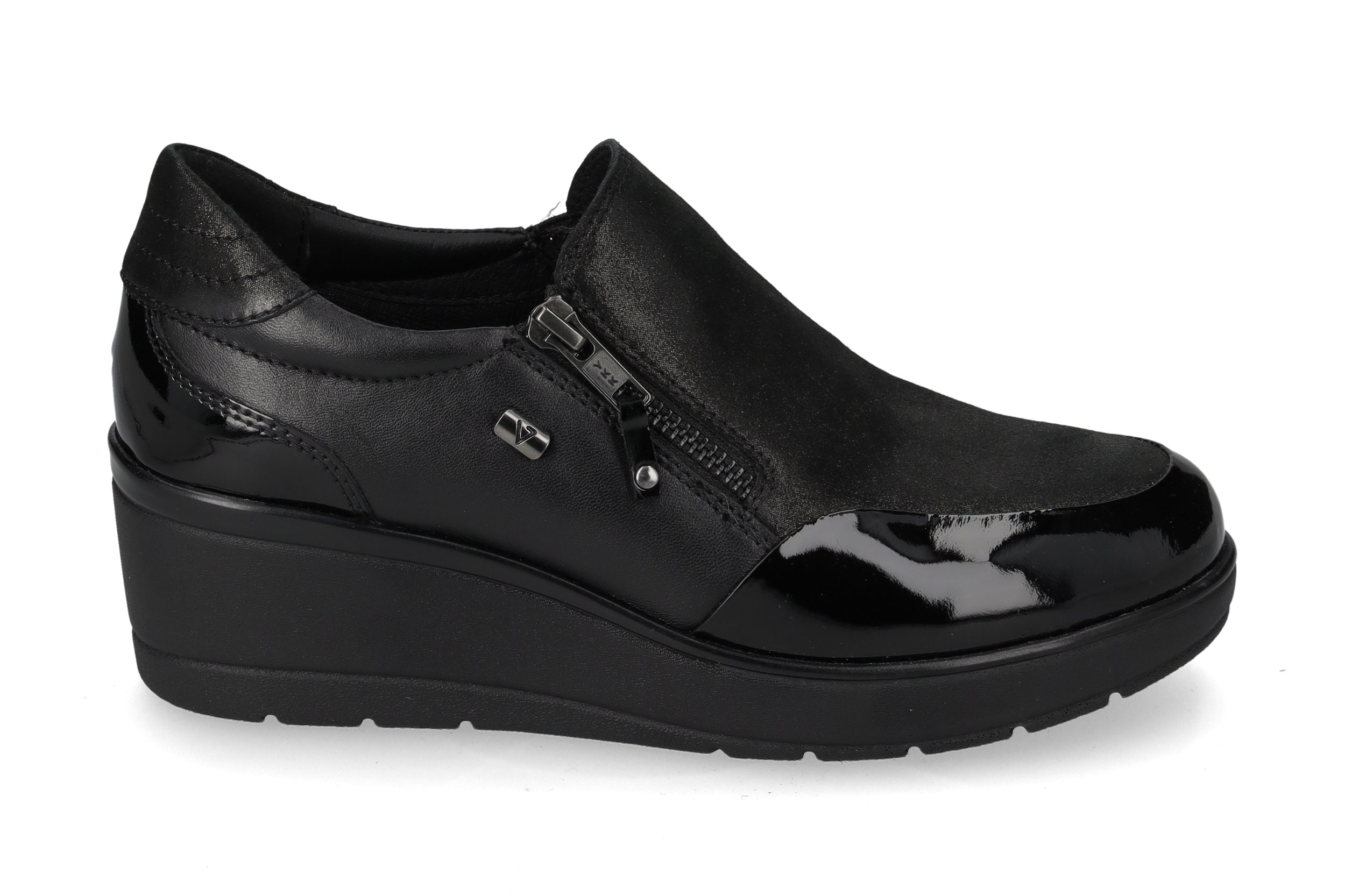 HomeUncategorizedBlack Calf Sneaker Black Calf Sneaker Code: 36446-1 Collection: Women's Sneaker SKU: 36446-1 Category: Uncategorized Product ID: 59580 Sneaker with synthetic upper and leather insole, medium wedge. Available colors: Find your nearest store Share on Print Related products Silver sneaker Code: 35490-3 Gold Sneaker Code: 35522L-1 Black nappa sneaker Code: VD200AF-1 Black sneaker Code: 35240-2